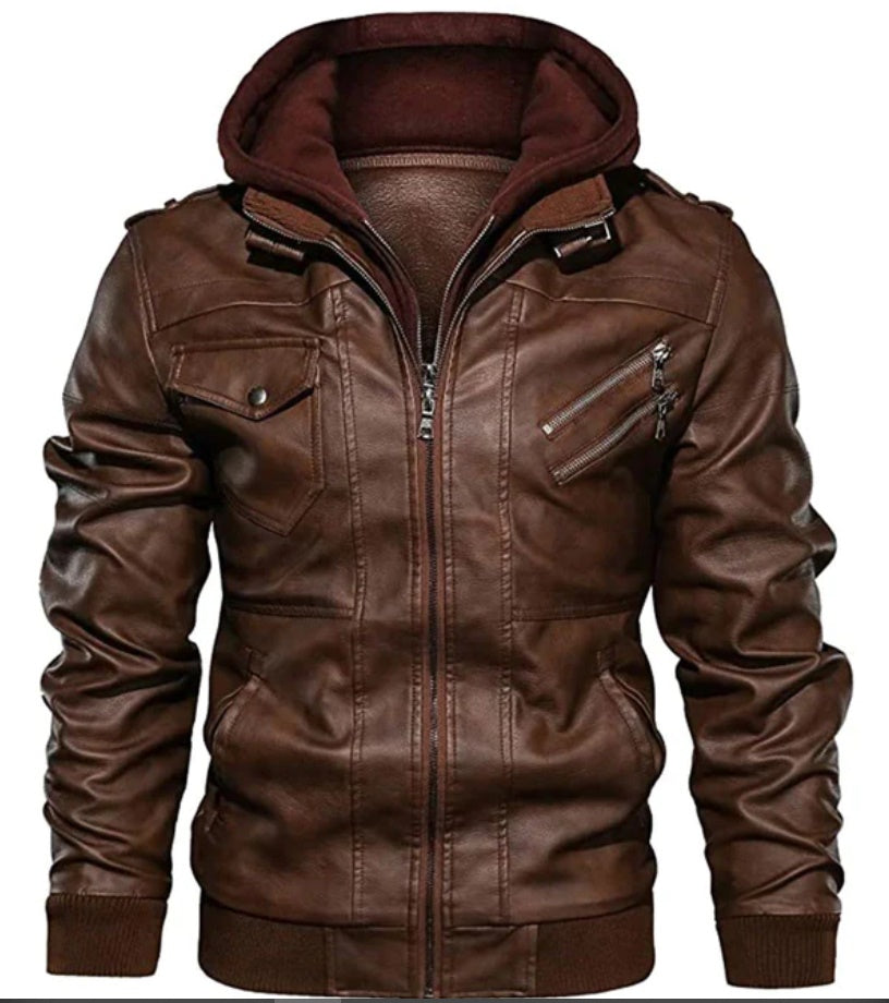 Expertly crafted from genuine leather, the Brown Bomber Hoodie Men leather riding jacket is the perfect addition to any stylish man's wardrobe. Combining timeless style and durability, this luxury bomber hoodie leather riding jacket will keep you warm and fashionable in any weather. Enjoy the luxury and comfort of genuine leather with this must-have piece.