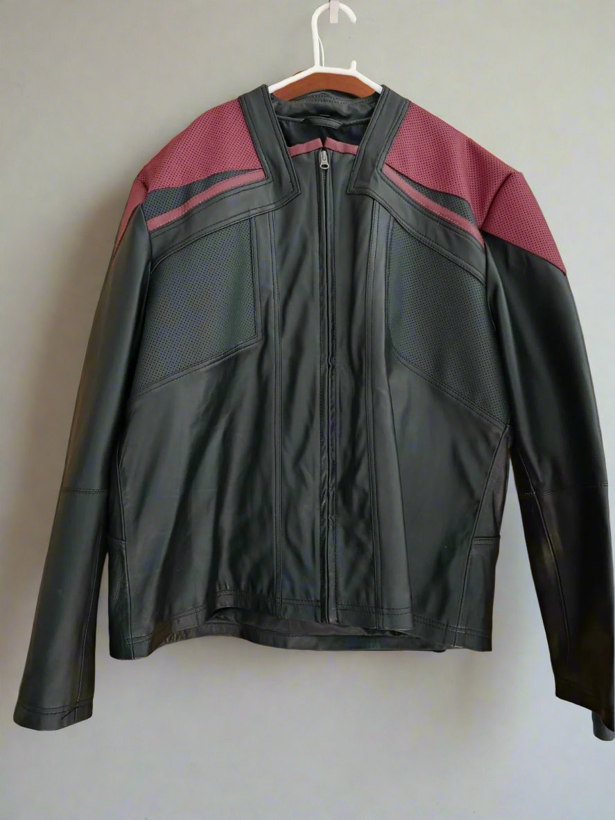 Unleash your adventurous spirit with our Perforated Leather Jacket for men. Made with high-quality black and maroon leather, tiny delta dots perforation on this jacket, boasts a front zipper closure and perforated detailing for a bold, edgy look. Perfect for adding a touch of risk-taking to your style.