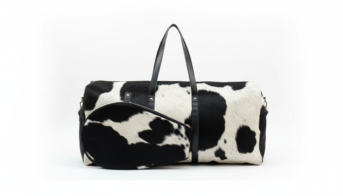 This handmade cowhide leather tennis bag is a one-of-a-kind statement piece, crafted for customers who value quality, functionality, and bold design. Made using genuine cowhide leather, each bag features a unique black and white natural pattern, ensuring no two bags are exactly alike.