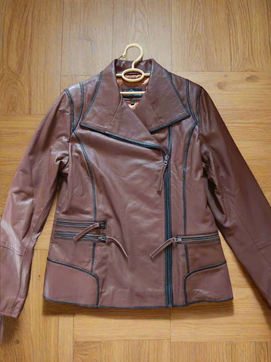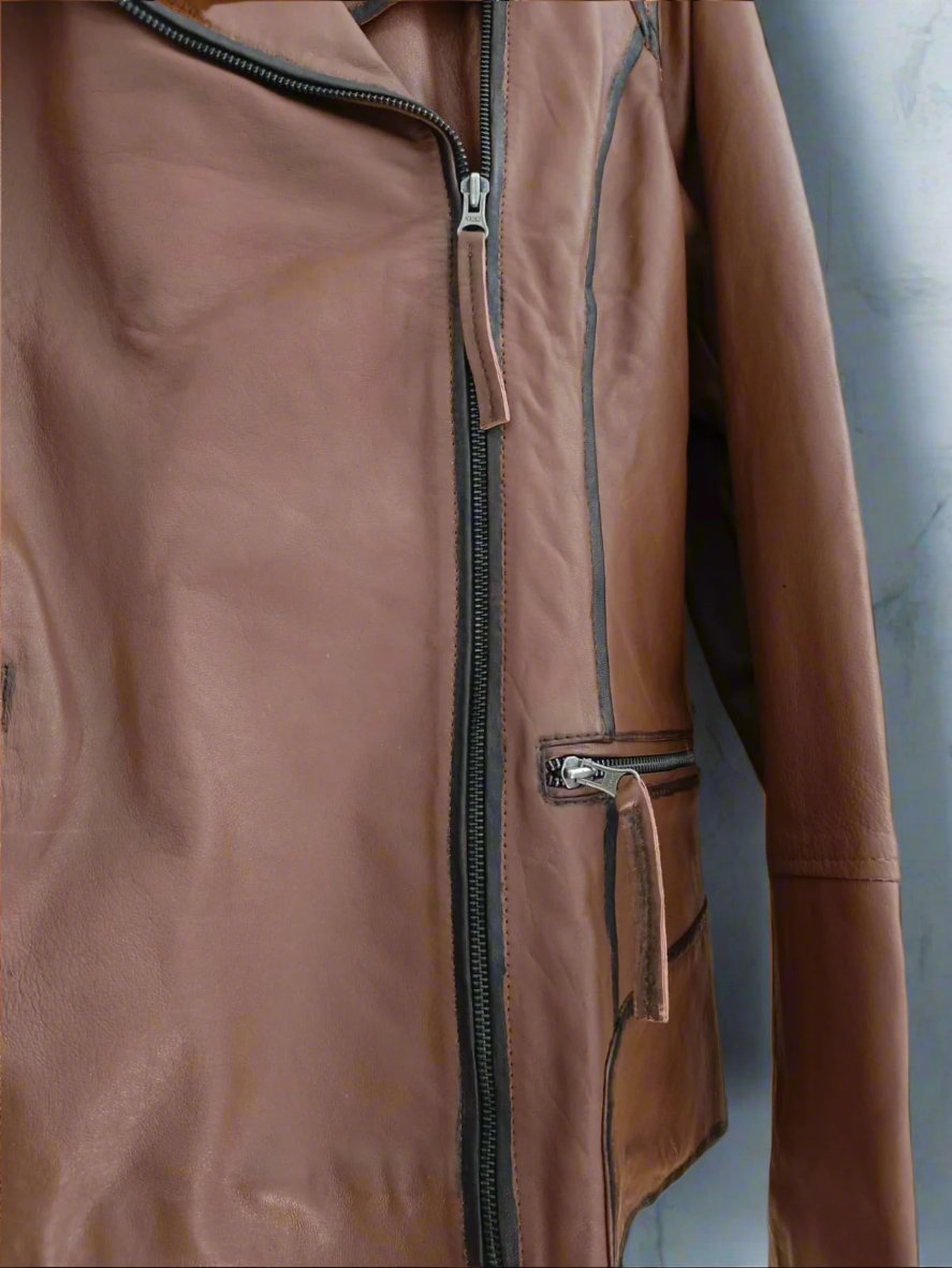 Zubi is our new stylish and simple soft real leather jacket for women with waxed leather. Made from high-quality real leather and lined with comfortable silk lining inside, This jacket offers both functionality and luxury. This is your daily look jacket that goes with eavery outfit.